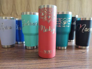 Contamos con eje rotativo para grabar sus termos, vasos y copas en acero o cristal
